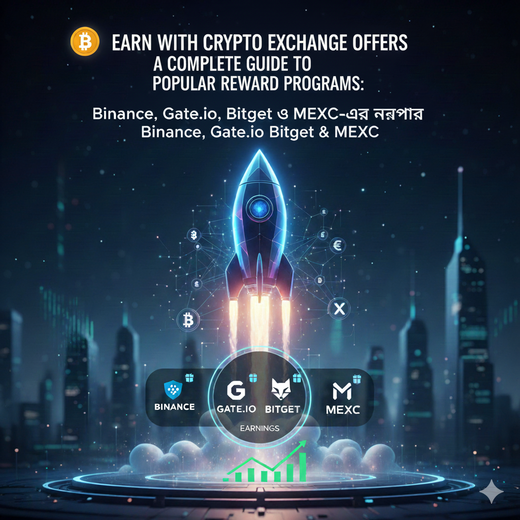 ক্রিপ্টো থেকে ফ্রি রিওয়ার্ড নিতে চান? Binance, Gateio, Bitget আর MEXC প্রতিদিন দিচ্ছে নানা রকম অফার—ক্যান্ডি ড্রপ, এয়ারড্রপ, নতুন লিস্টিং রিওয়ার্ড, ট্রেডিং বোনাস—সব মিলিয়ে অনলাইন আয়ের এক দারুণ সুযোগ! ঠিক এসব নিয়েই আমি তৈরি করেছি সহজ ভাষায় একটি সম্পূর্ণ গাইড। কোন অফার কোথায় আসে, কীভাবে পাওয়া যায়—সব কিছু এক জায়গায়। ব্লগটি পড়ে নিলে আপনিও সুযোগগুলো মিস করবেন না!