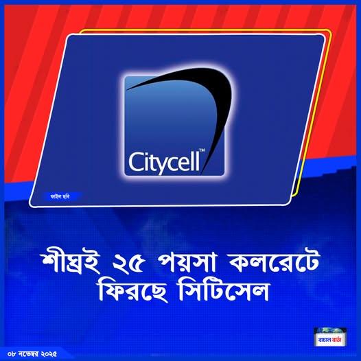 • গ্রাহকদের সুখবর দিয়ে শীঘ্রই ২৫ পয়সা কলরেটে ফিরছে সিটিসেল